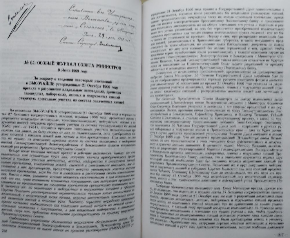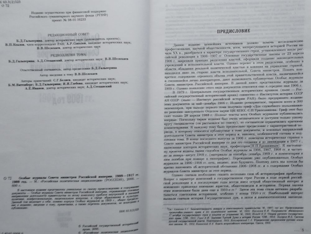 Большой энциклопедический формат. Тираж 1000 экз. 598 стр. Книга представляет продолжение издания уникальных по своему содержанию и происхождению документов — Особых журналов Совета министров Российской империи, отражающих основные направления деятельности правительства по всему комплексу проблем внутренней и внешней политики в начале ХХ в. Составляющие данный том Особые журналы за 1909 г. снабжены введением, примечаниями и списком наиболее часто встречающихся в документах сокращений. В томе также содержится перечень журналов, не вошедших в публикацию полностью.