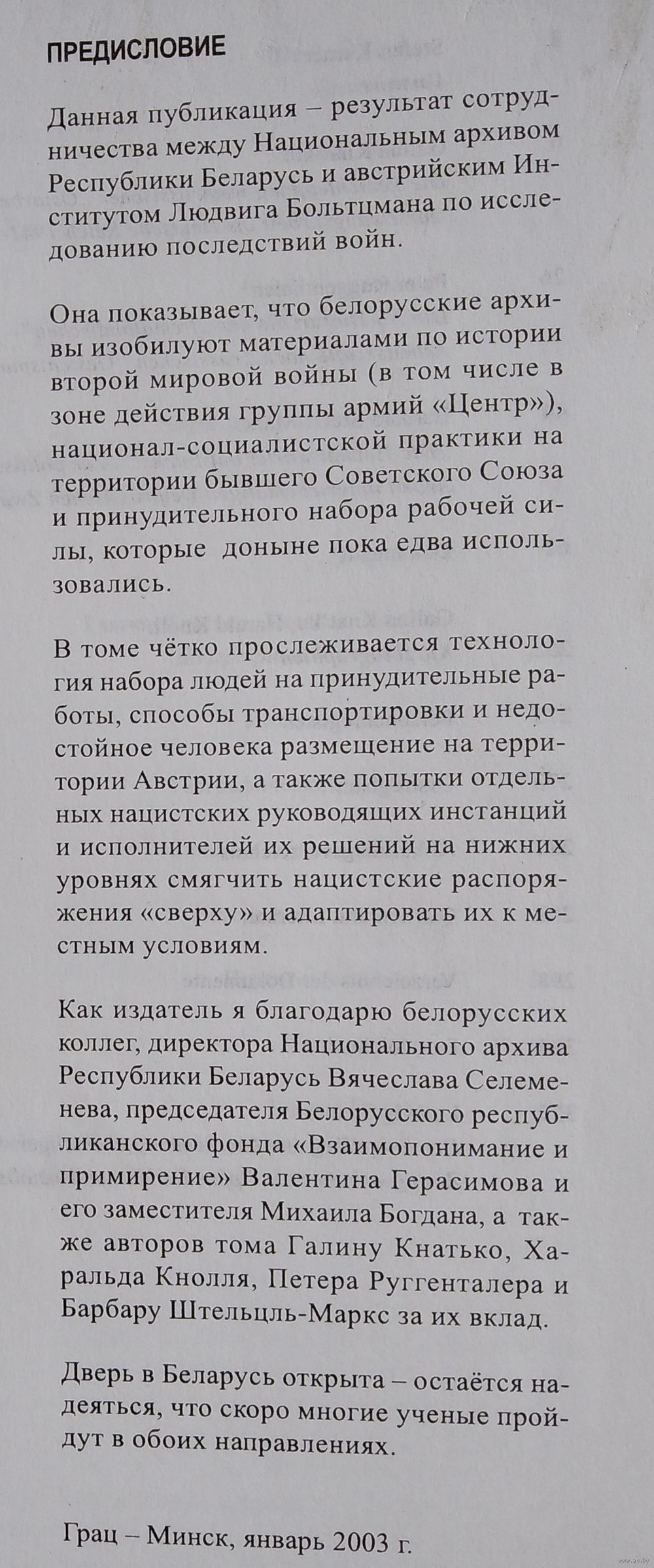 Остарбайтеры. Принудительный труд белорусского населения в Австрии: Документы и материалы / Ин-т по исслед. последствий войн (Грац, Австрия) и др. - Мн. : Нац. арх. Беларуси : Грац, Ин-т по исслед. последствий войн, 2003 г. 332 с. Мягкая обложка.