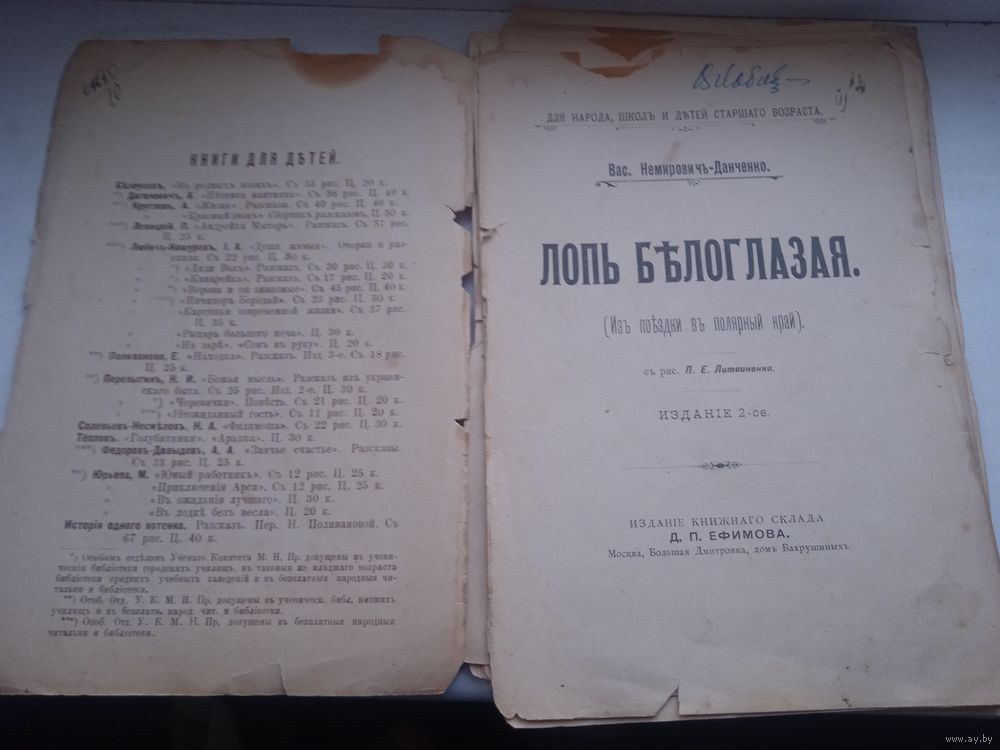 Книга известного учёного-краеведа Василия Ивановича Немировича-Данченко "Лопь Белоглазая" изданная в 1902 году в Москве