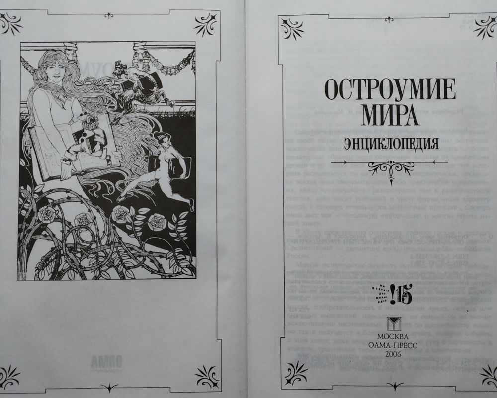Подарочное издание. Большой энциклопедический формат. Ляссе. Тираж 4000 экз. 590 стр. Эта книга — своего рода энциклопедия остроумных высказываний знаменитых людей, собрание исторических анекдотов, веселых былей и преданий. В книге представлены образцы остроумия древних греков и древних римлян, восточных мудрецов (Индии, Китая. Турции), западных мыслителей, поэтов и писателей (от раннего средневековья до двадцатого века), русских царей, шутов, государственных деятелей, актеров (от петровских времен до наших дней).