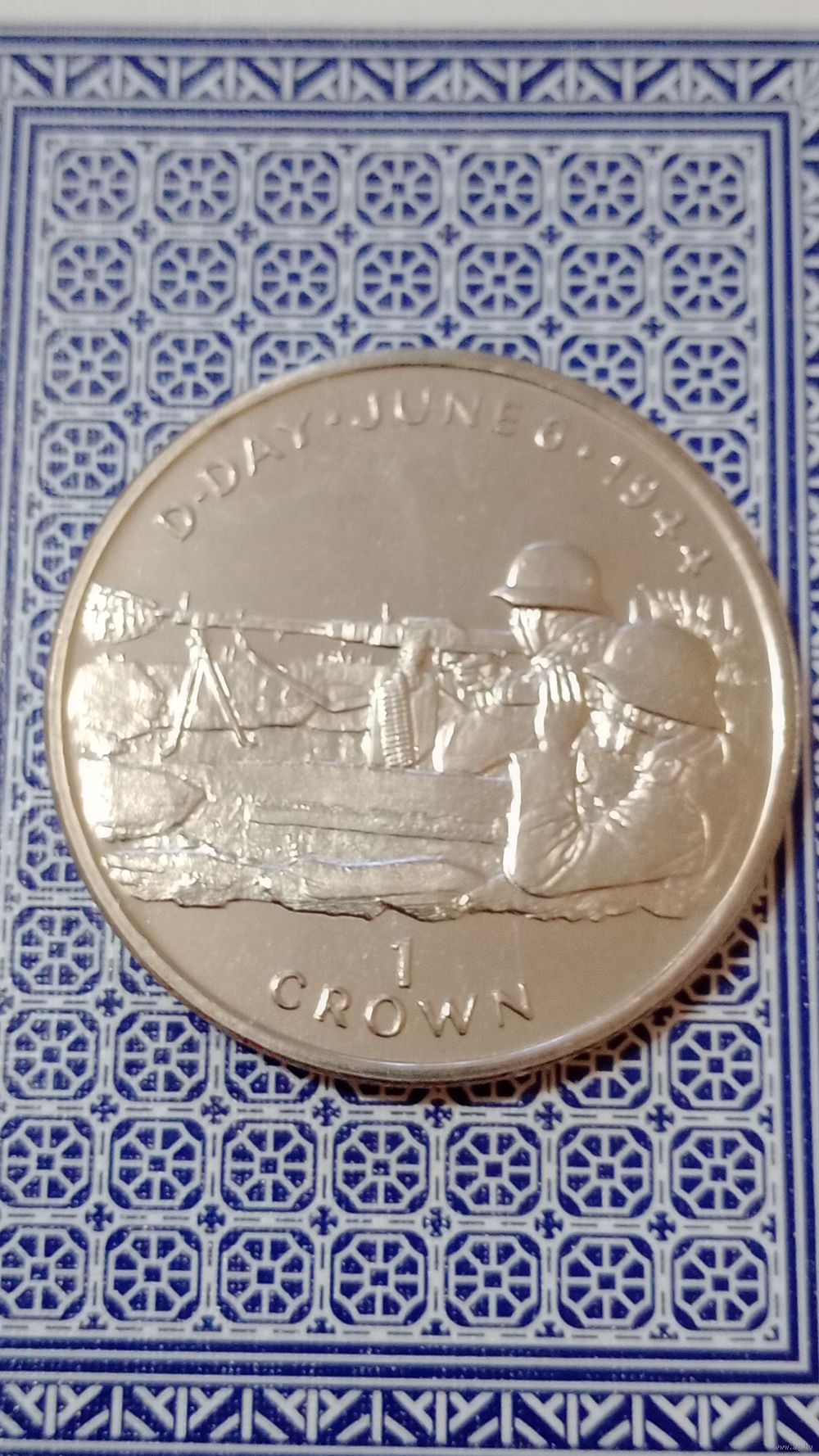 Остров Мэн 1 крона 1984 высадка в Нормандии позиции немецкого пулемёта