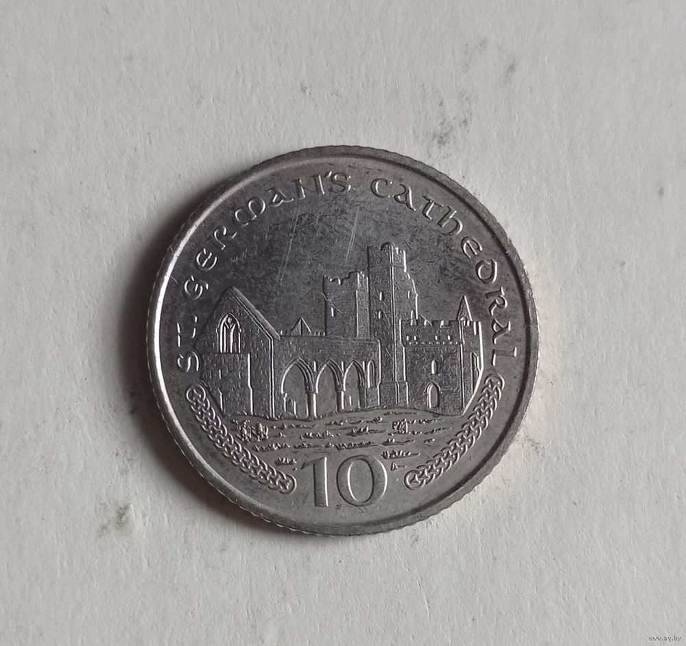 Остров Мэн 10 пенсов 2001 год костел святого Германа нечастая монета
