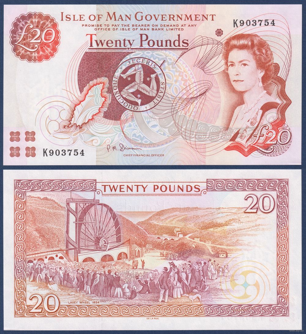Остров Мэн, 20 фунтов 2013 г., P-49 (K, королева Елизавета II, водяное колесо Леди Изабелла), UNC