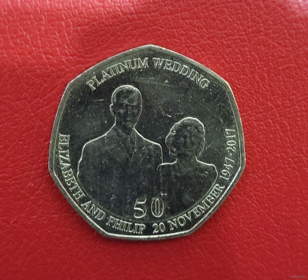 Остров Мэн 50 пенсов 2017 Свадьба Елизаветы и Филиппа 1967-2017