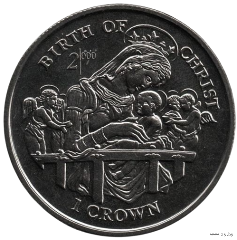 Остров Мэн (Коронное Владение). 1 крона 1997. Рождество. 2000- летие Рождения Христа. Матерь Божия с Иисусом.