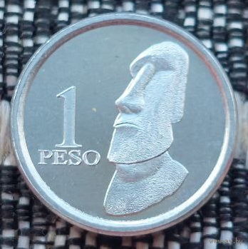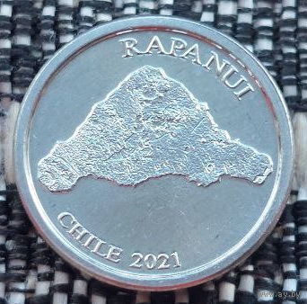 Остров Пасхи 1 песо 2021 года. Древний каменный тотем, Муай. Карта острова. Самая удаленная часть суши. Тихий океан.