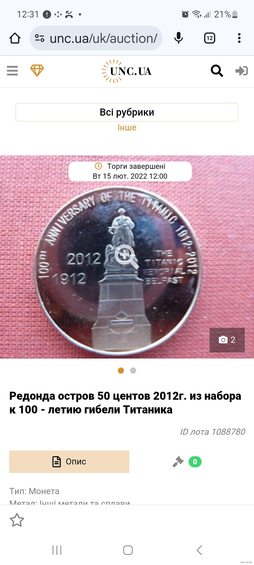 Остров Редонда 50 центов 2012 г ( Годовщина гибели Титаника )