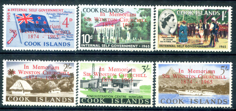 Острова Кука - 1966г. - памятный выпуск в честь Уинстона Черчилля - 6 марок - полная серия, MNH [Mi 109-114]. #3-WB-88-A-1