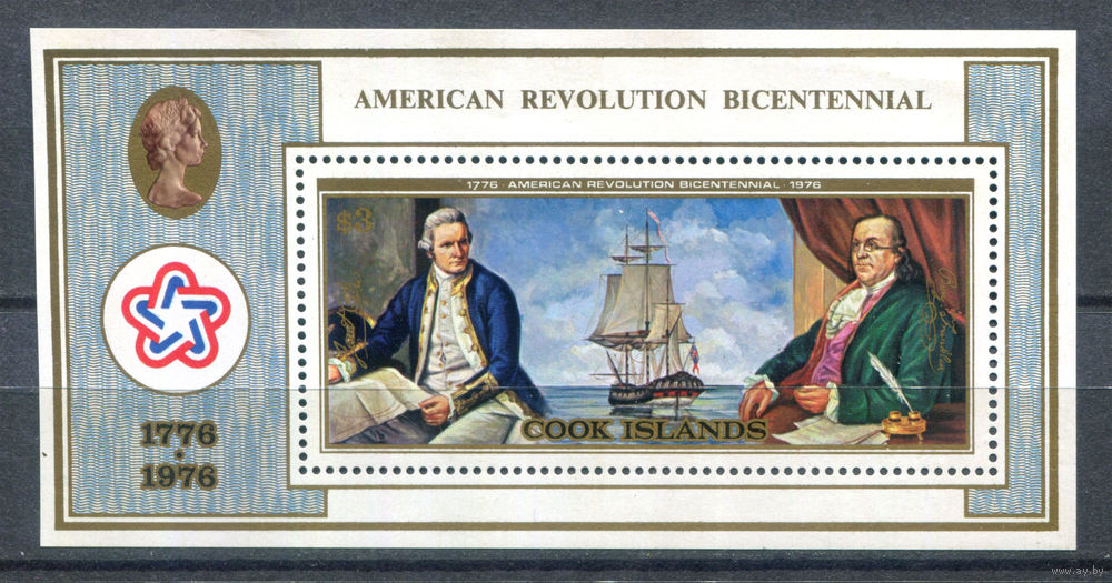 Острова Кука - 1976г. - визит королевы Елизаветы II в США, корабль - 1 блок - полная серия, MLH [Mi bl. 58]. #3-WB-Z-2-21