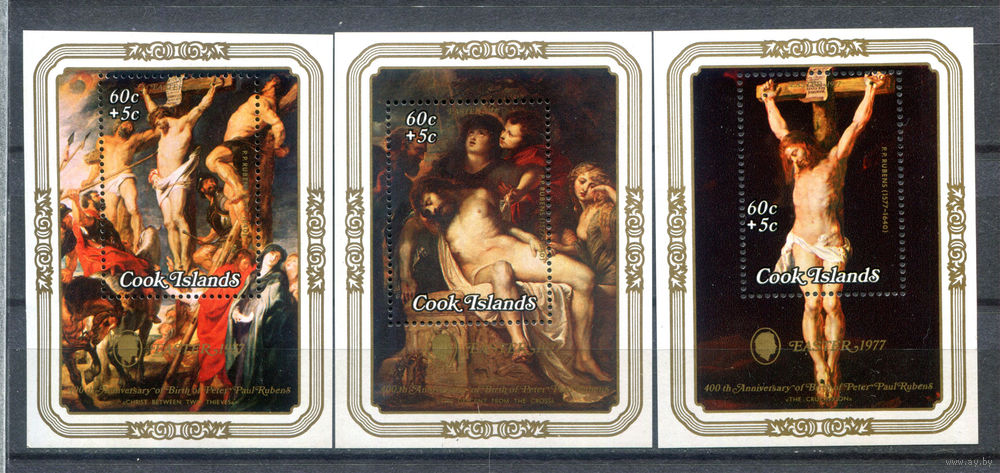 Острова Кука - 1977г. - Пасха, картины - 3 блока - полная серия, MNH [Mi bl. 68 - bl. 70]. #3-WB-Z-2-22