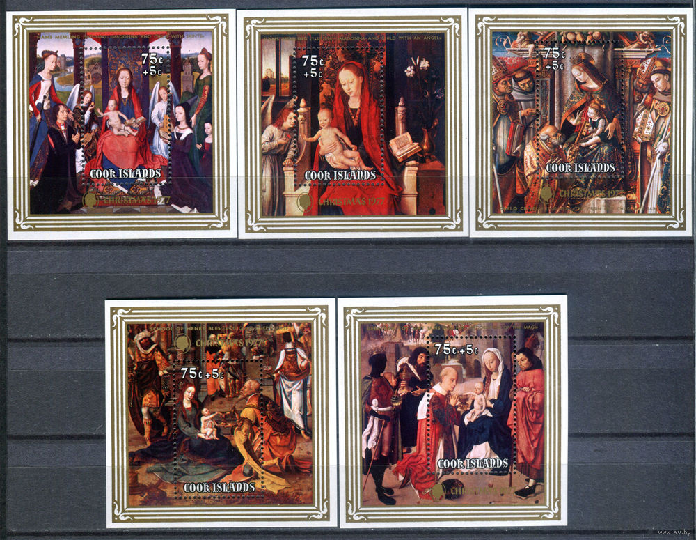 Острова Кука - 1977г. - Рождество, картины - 5 блоков - полная серия, MNH [Mi bl. 72 - bl. 76]. #3-WB-Z-2-22