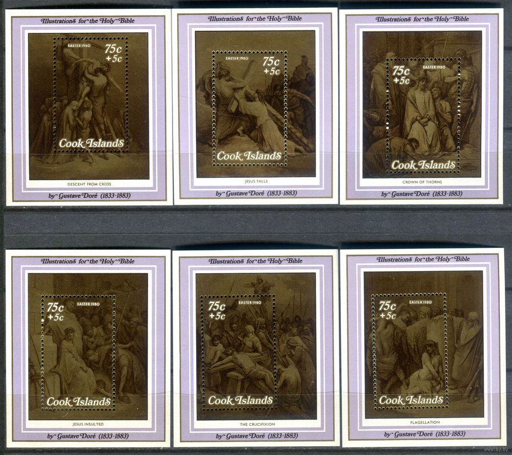Острова Кука - 1980г. - Пасха, картины - 6 блоков - полная серия, MNH [Mi bl. 94 - bl. 99]. #3-WB-Z-2-6