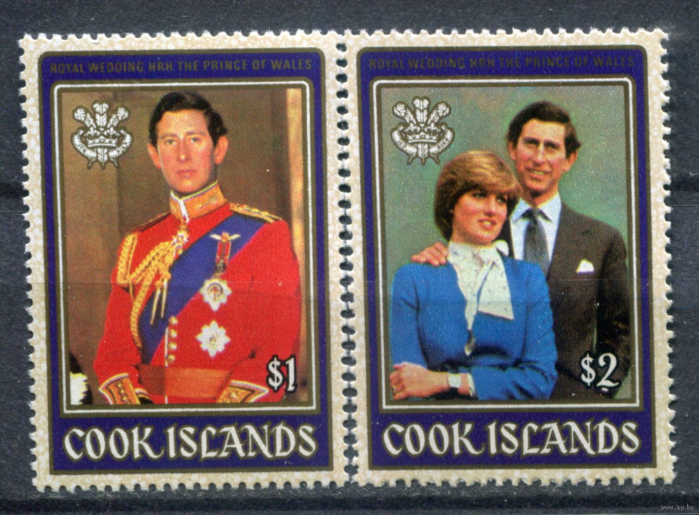 Острова Кука - 1981г. - свадьба принца Чарльза и принцессы Дианы - 2 марки - полная серия, MNH с отпечатками на клее [Mi 778-779]. #3-WB-Z-1-1
