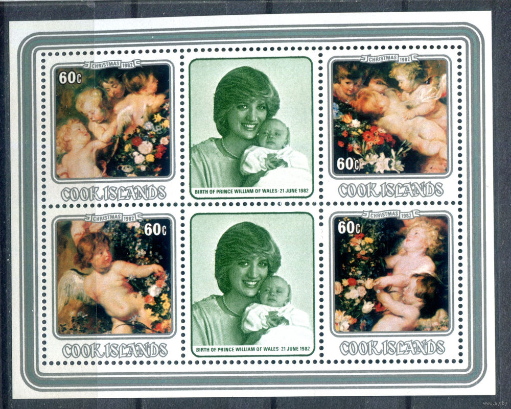 Острова Кука - 1982г. - Рождество, картины, принцесса Диана, рождение принца Уильяма - 1 блок - полная серия, MNH [Mi bl. 127]. #3-WB-Z-2-12