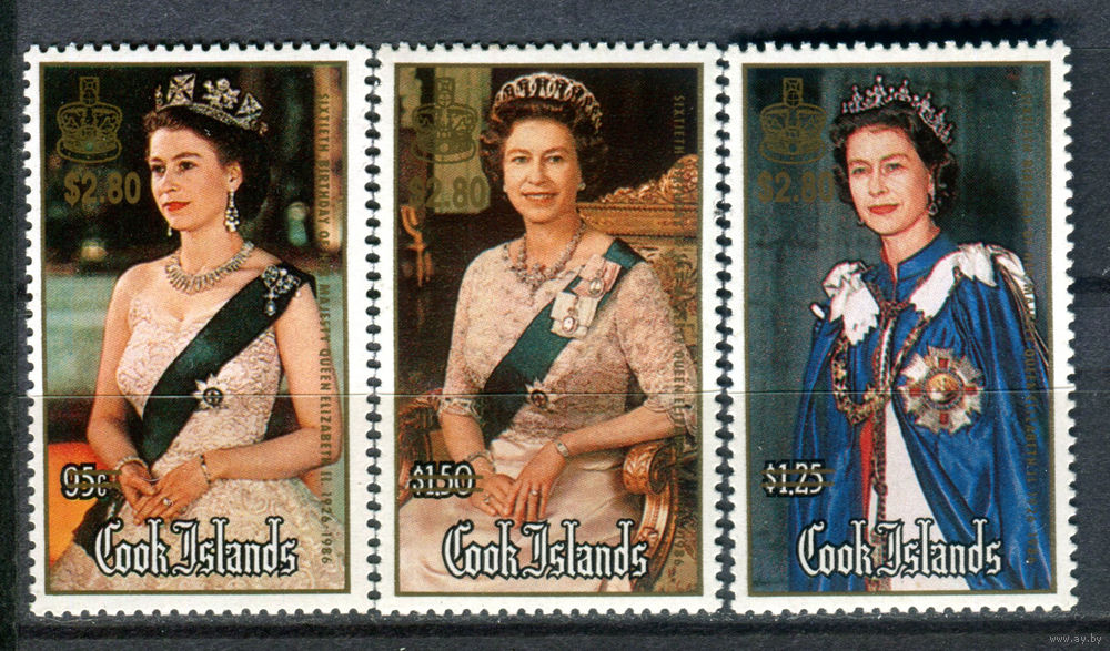 Острова Кука - 1986г. - 60-летний юбилей королевы Елизаветы II - 3 марки - полная серия, MNH [Mi 1105-1107]. #3-WB-Z-1-3