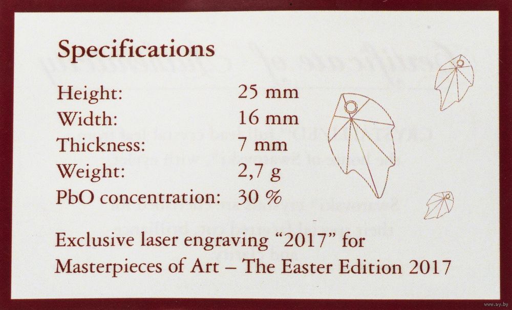 Вставка: Рама картины обрамлена 14 кристаллами SWAROVSKI®, плюс один большой подарочный кристалл SWAROVSKI®.