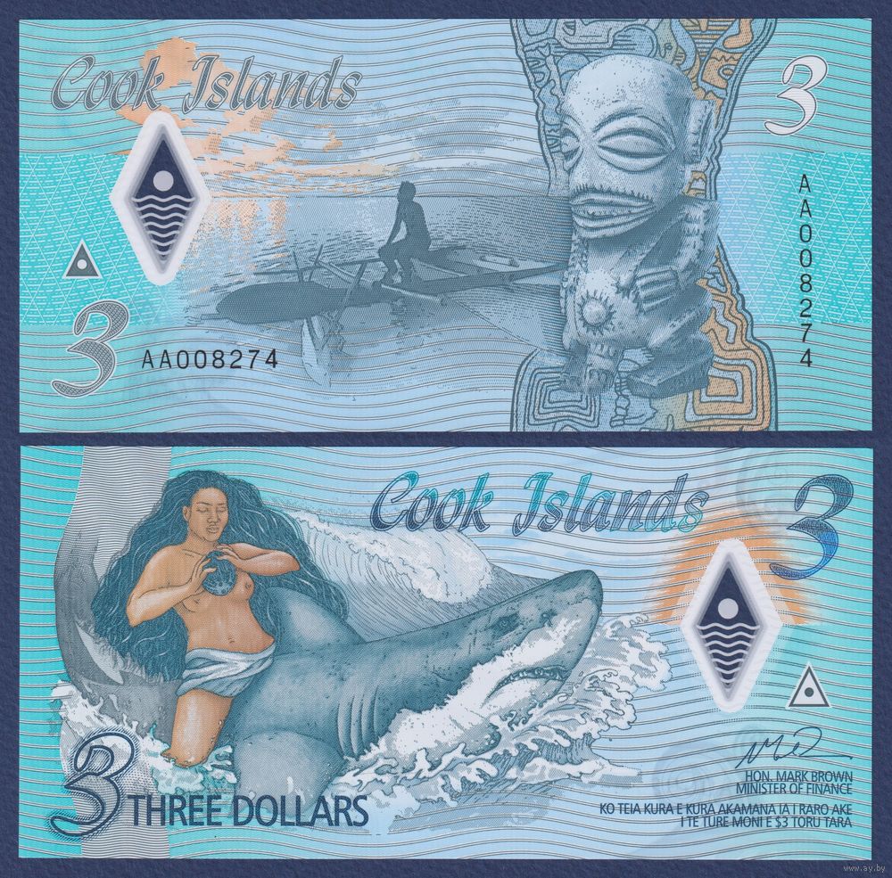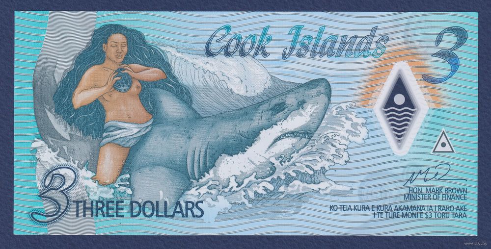 Острова Кука, 3 доллара 2021 г, P-W11 (AA, полимер, легенда об Ине и Акуле, номинация IBNS 2021), UNC