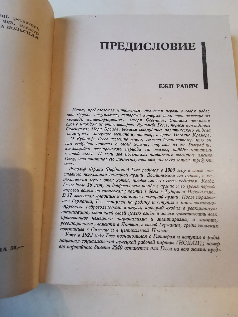 Книга является сборником документов, авторами которых являются эсэсовцы из команды концентрационного лагеря Освенцим: Рудольф Гесс-первый комендант Освенцима, Пер Броад - бывший сотрудник политического отдела лагеря, т.е. лагерного гестапо и Иоганн Кремер - врач лагеря.