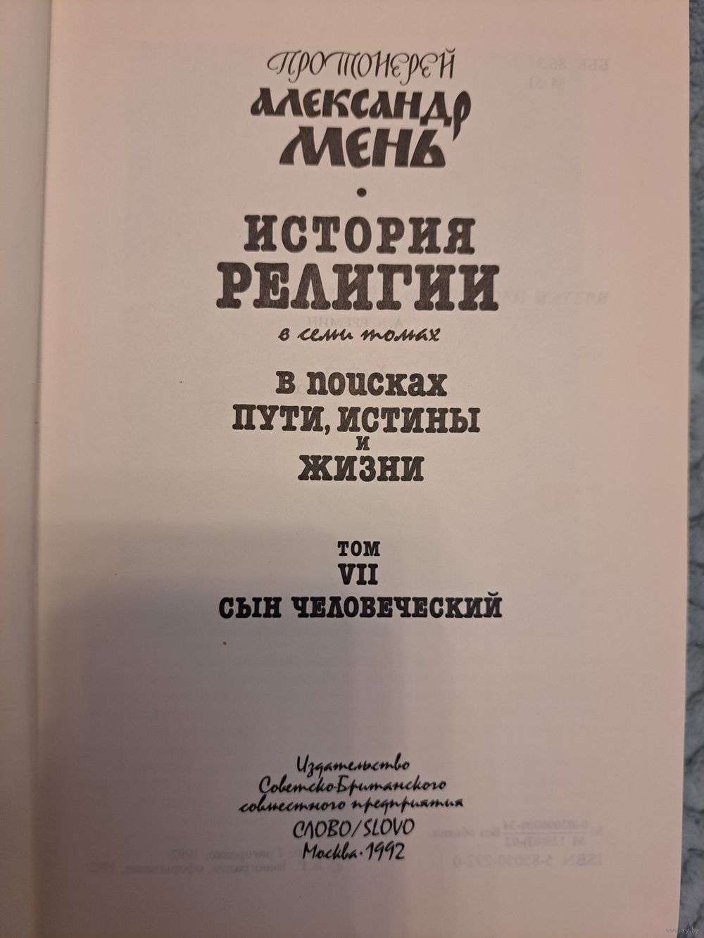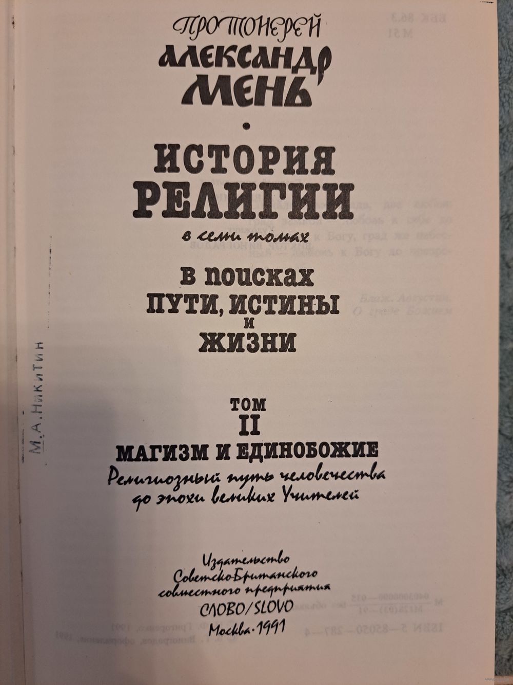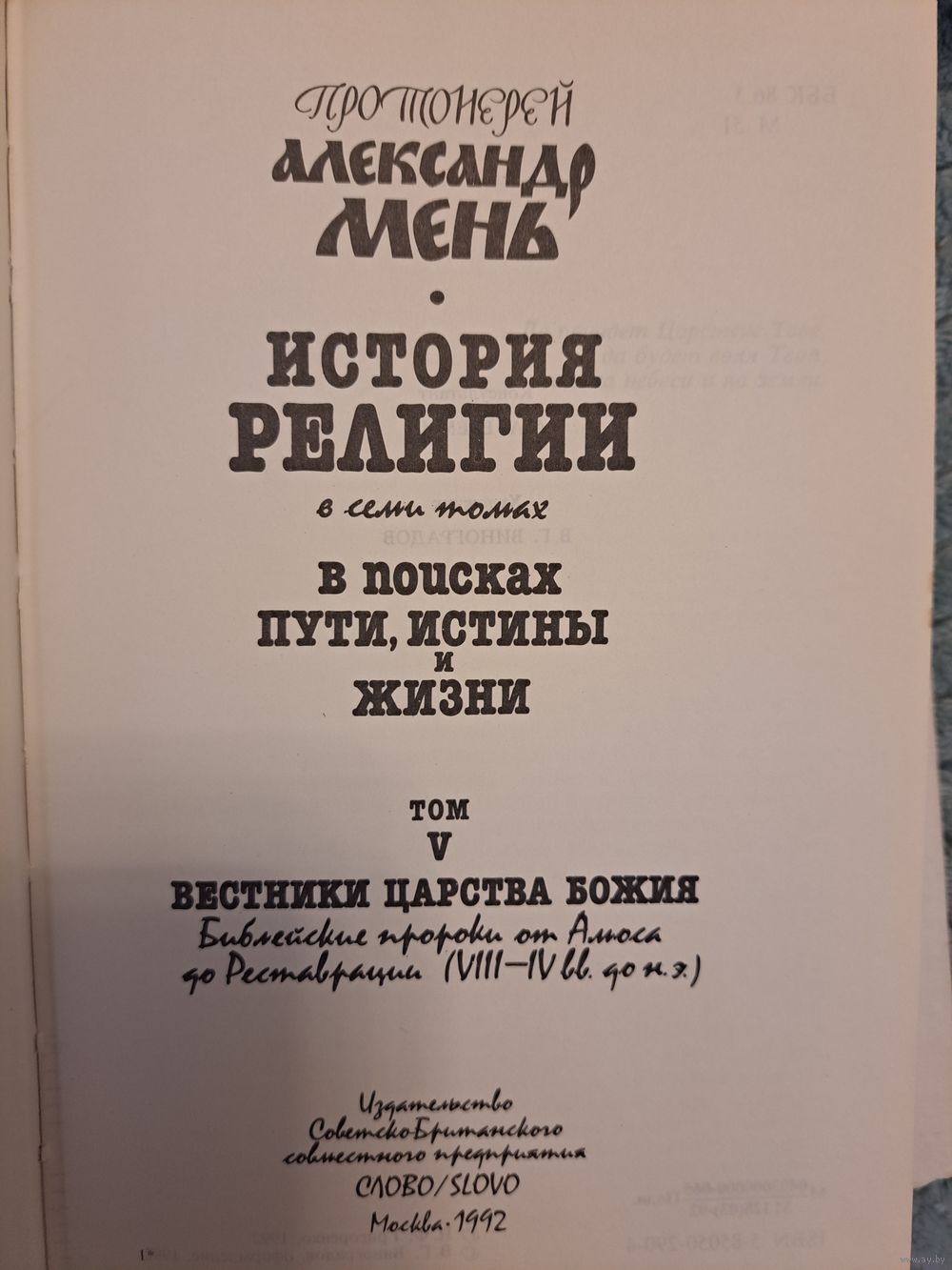 Отец Александр Мень История религии. В поисках пути истины и жизни. Тома 1, 2, 3, 5, 7