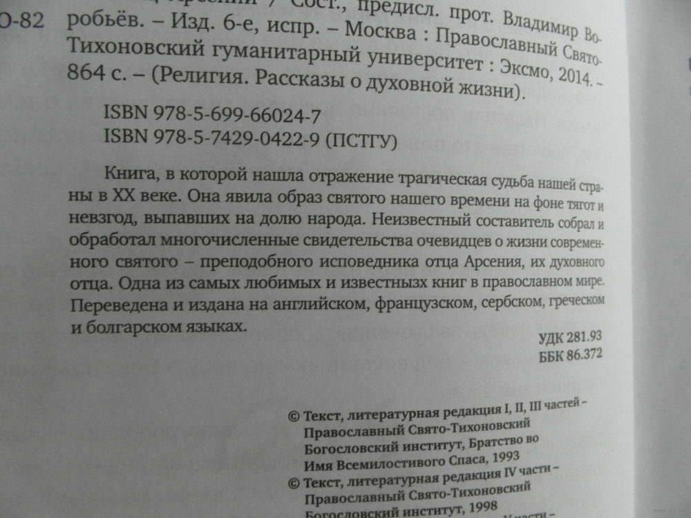 Отец Арсений` - это сборник литературно обработанных свидетельств очевидцев о жизни современного исповедника - их духовного отца, а также их рассказы о своей жизни. Первые издания распространились по всей России и за ее пределами и сделали книгу Отец Арсений` одной из самых любимых в православном мире. Книга переведена и издана на английском и греческом языках. Она явила образец святого, внутренне тождественный православной святости всех времен, но имеющего неповторимые черты подвижника нового времени. Настоящее издание этой книги посвящается памяти новых мучеников и исповедников российских. В книге приводятся фотографии пострадавших за Христа подвижников, известных отцу Арсению или близких ему по своему духовному пути. В новом издании печатается пятая часть `Возлюби ближнего своего`, переданная издателям после выхода в свет предыдущих изданий.