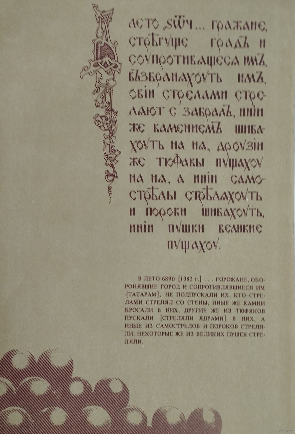 Большой формат. Тираж 15000 экз. 368 стр. В книге излагаются главнейшие этапы 600-летней истории развития русской и советской артиллерии, совершенствования её вооружения, боевого применения, затрагиваются проблемы, решаемые артиллерийской наукой. Рассказывается о славном историческом прошлом отечественной артиллерии, её могуществе, о доблести артиллеристов, прославивших свое оружие в боях за Родину.