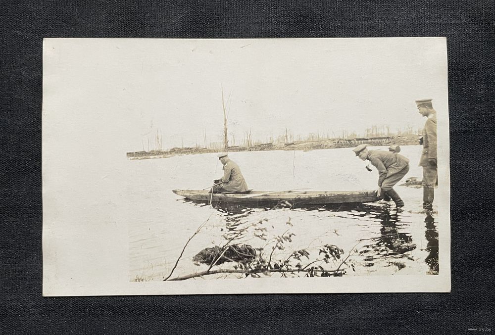 Открытка 1 Мировая война / Во время наводнения / Щара Огинский канал / Немецкие офицеры, полевая униформа, бинокли