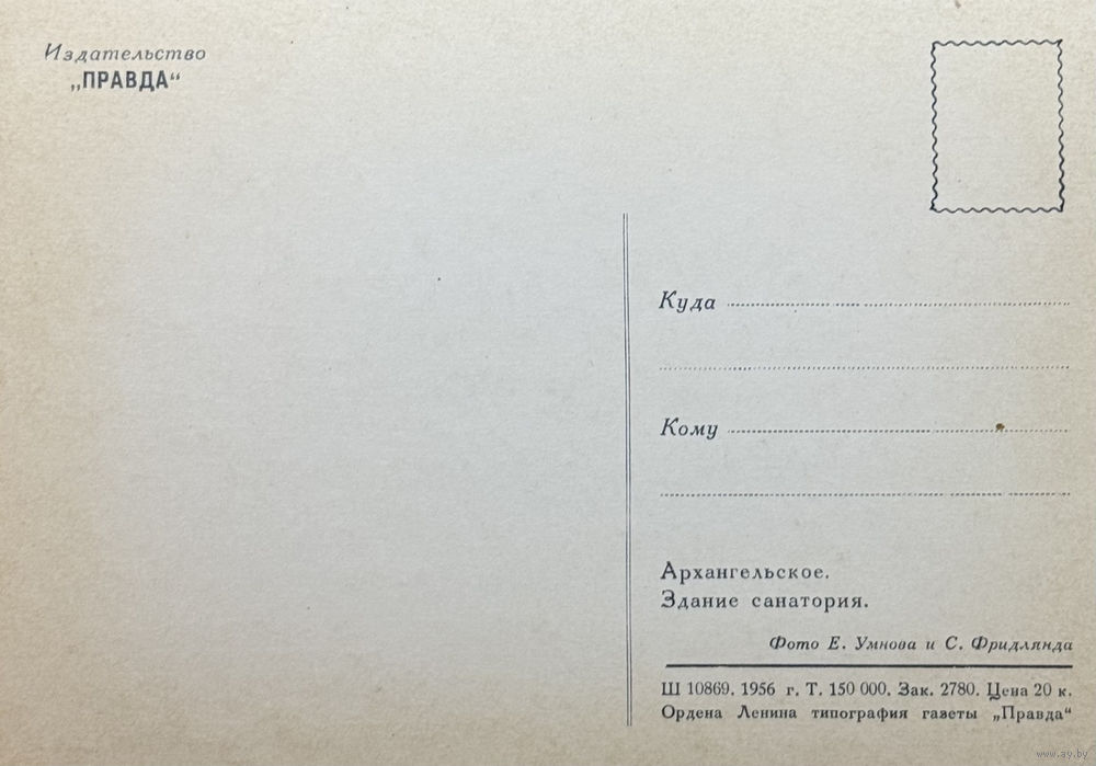 Открытка 1956 издательство Правда Архангельское Здание санатория фото Умнова и Фридлянда тир. 150 000