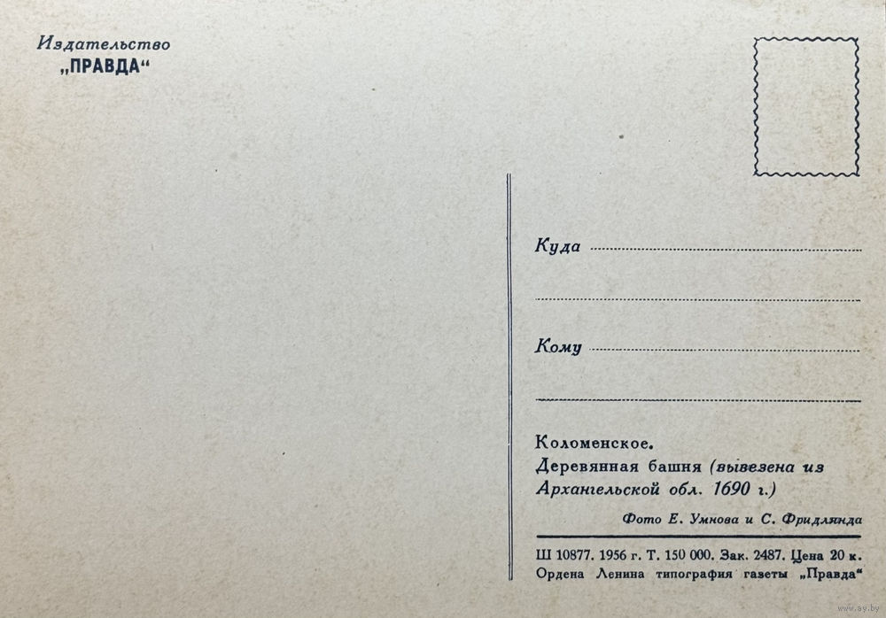 Открытка 1956 издательство Правда Коломенское деревянная башня фото Умнова и Фридлянда тир. 150 000