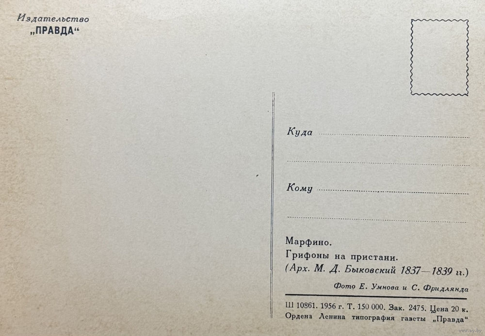 Открытка 1956 издательство Правда Марфино Грифоны на пристани фото Умнова и Фридлянда тир. 150 000