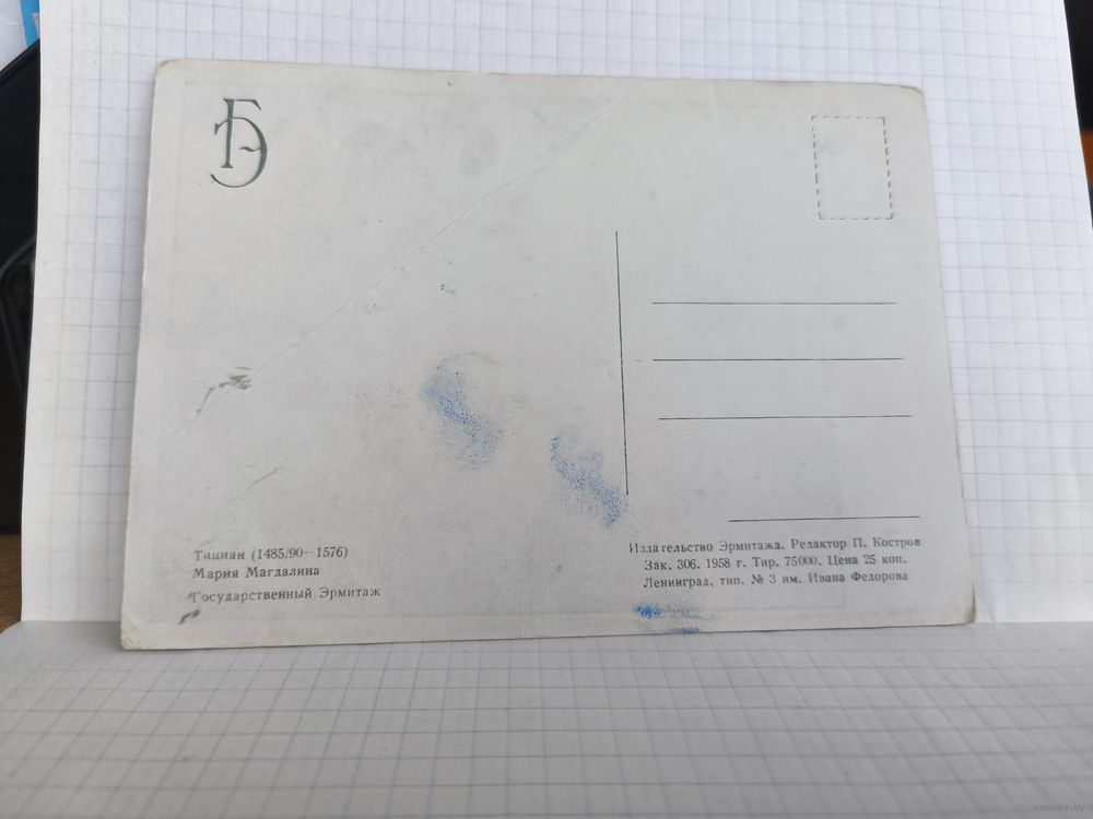 Открытка, 1958г. Государственный Эрмитаж. Тициан. Мария Магдалина. 14