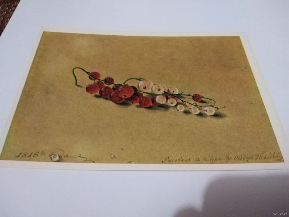 Открытка 1976г. Художник Ф. П. Толстой. Ягоды красной смородины.