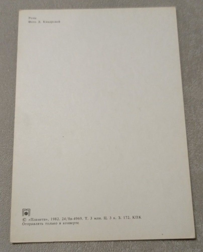 Открытка 1982 год. Фото Д. Киндровой. Розы, чистая. Передача в Витебске возле ратуши. Пересылка в другой город за счёт покупателя по тарифам Белпочты либо Европочты после 100% предоплаты.