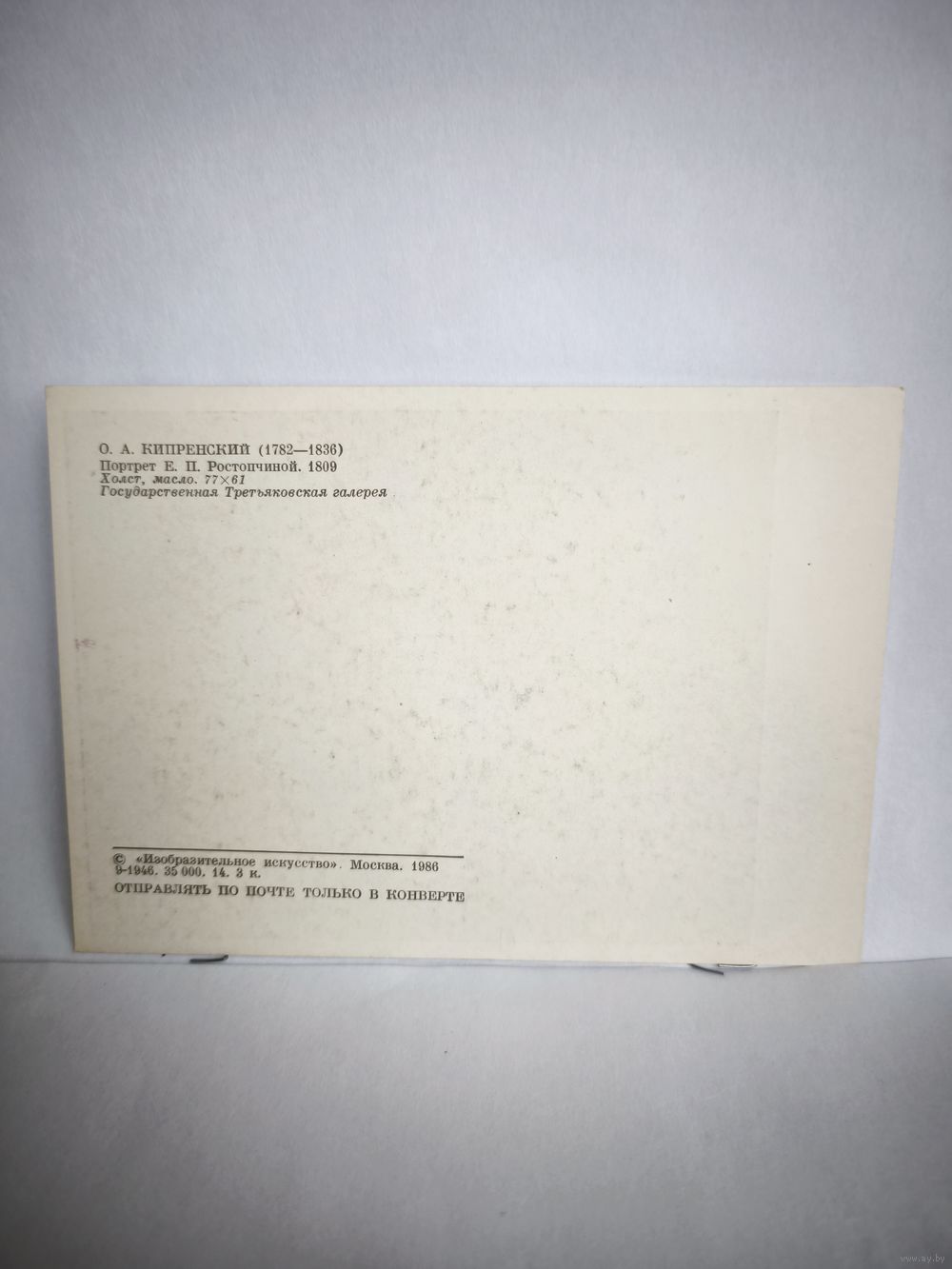 Открытка,1986г. О. А. Кипренский. Портрет Е. П. Ростопчиной