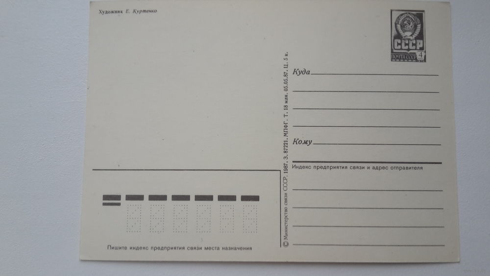 Открытка. 1987 год. Художник Е. Куртенко
