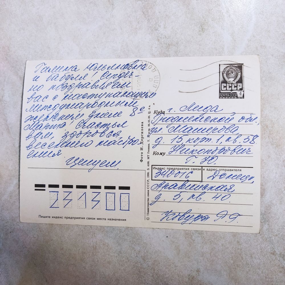 Открытка. 8 марта. Фото И. Леонтьева. 1989 г. Подписана.