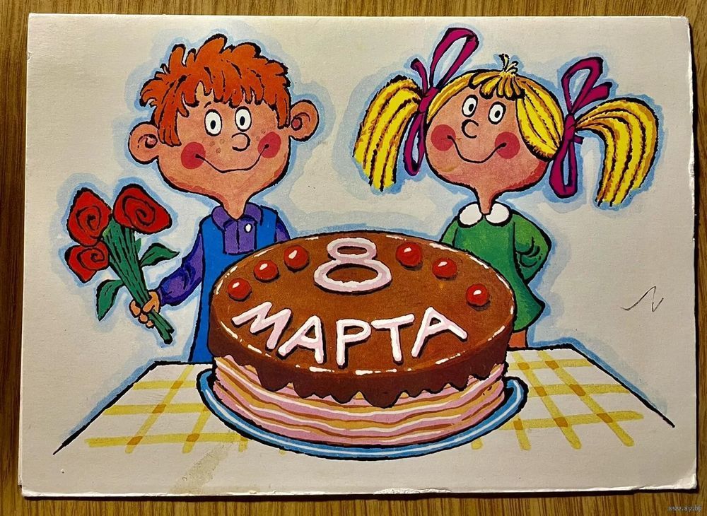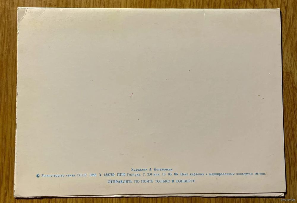 Открытка А. Котёночкин. 8 Марта. Двойная. Чистая 1986 года.