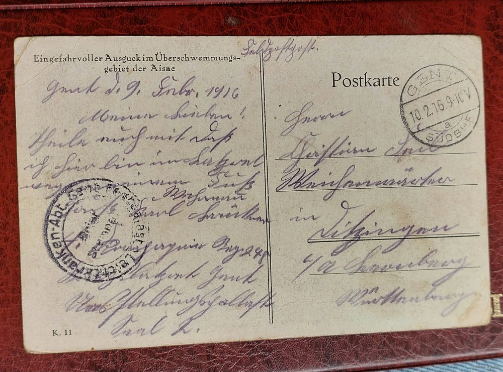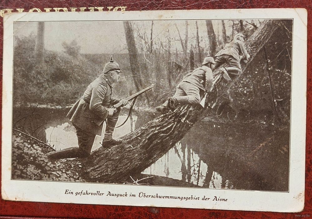 Открытка агитационная ПМВ.Германия.Немецкая пехота преодолевает водную приграду