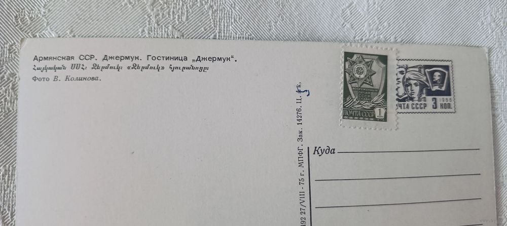 Открытка Армянская ССР. Джермук. Гостиница "Джермук".