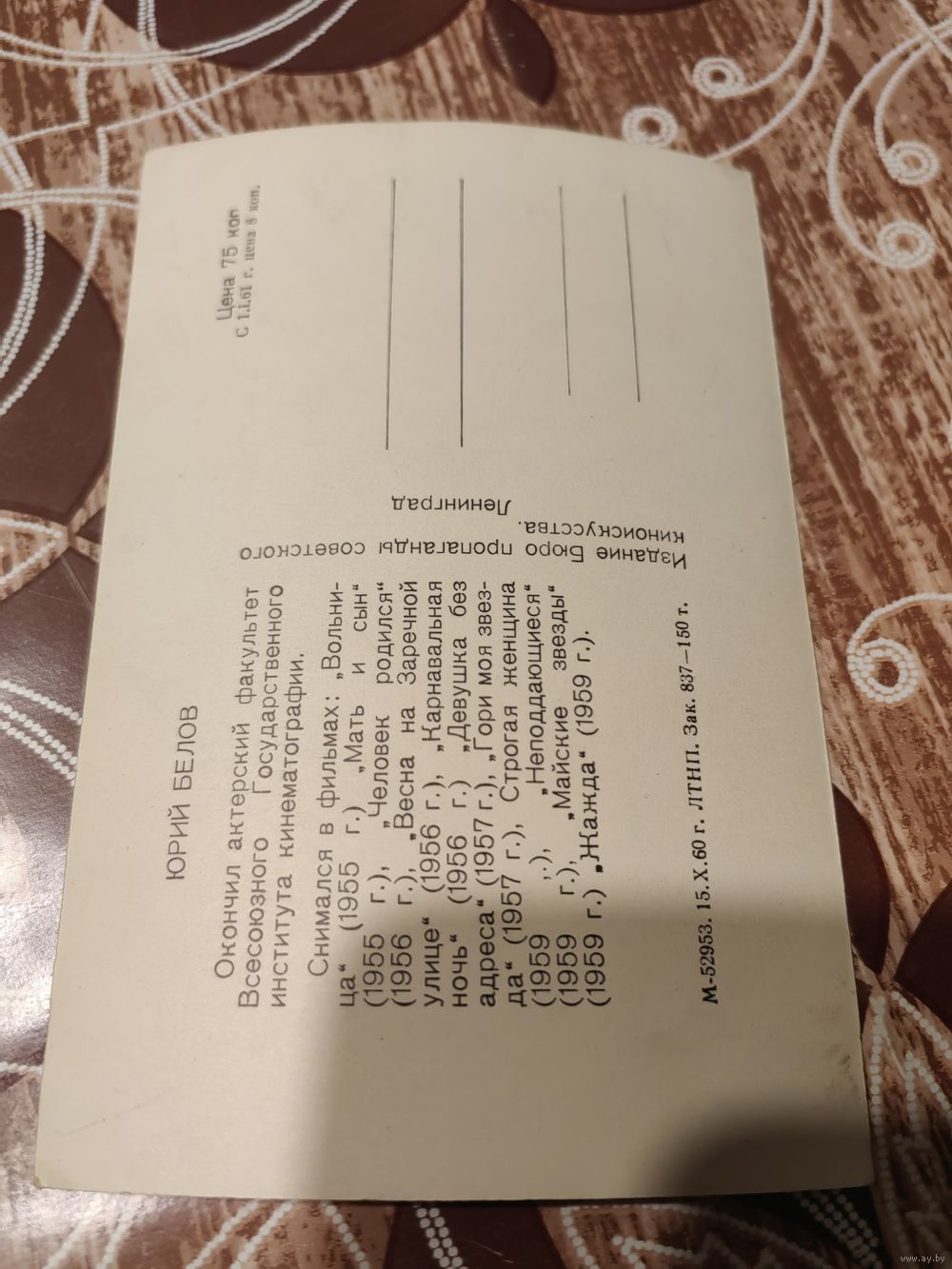 Открытка,артисты Белов