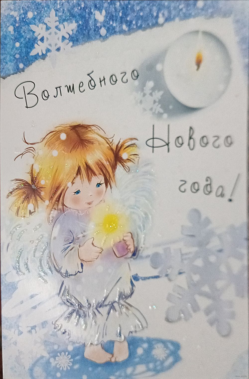 Открытка авторская Е. Бабок тиснение с глиттером девочка, снежинки, зима, свеча чистая