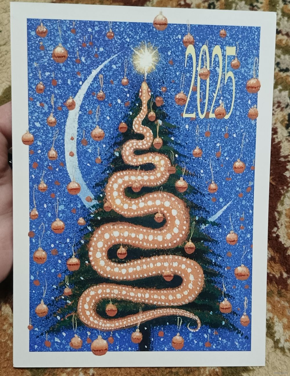 Открытка авторская И. Олейников 2025 13 на 18см год змеи глянцевая ламинация