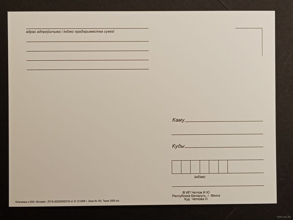 Открытка Беларусь. Художник Четкова 2009 год. Чистая.