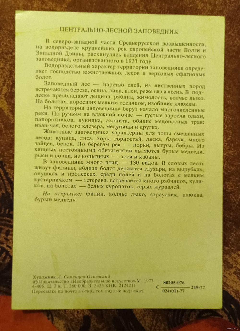 Открытка "Центрально-лесной заповедник"