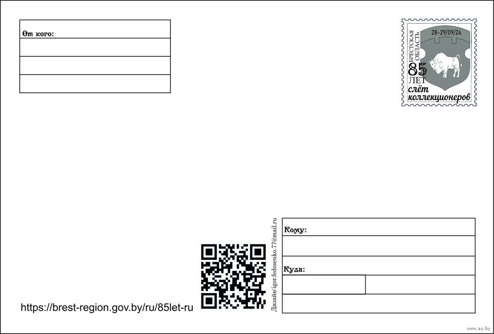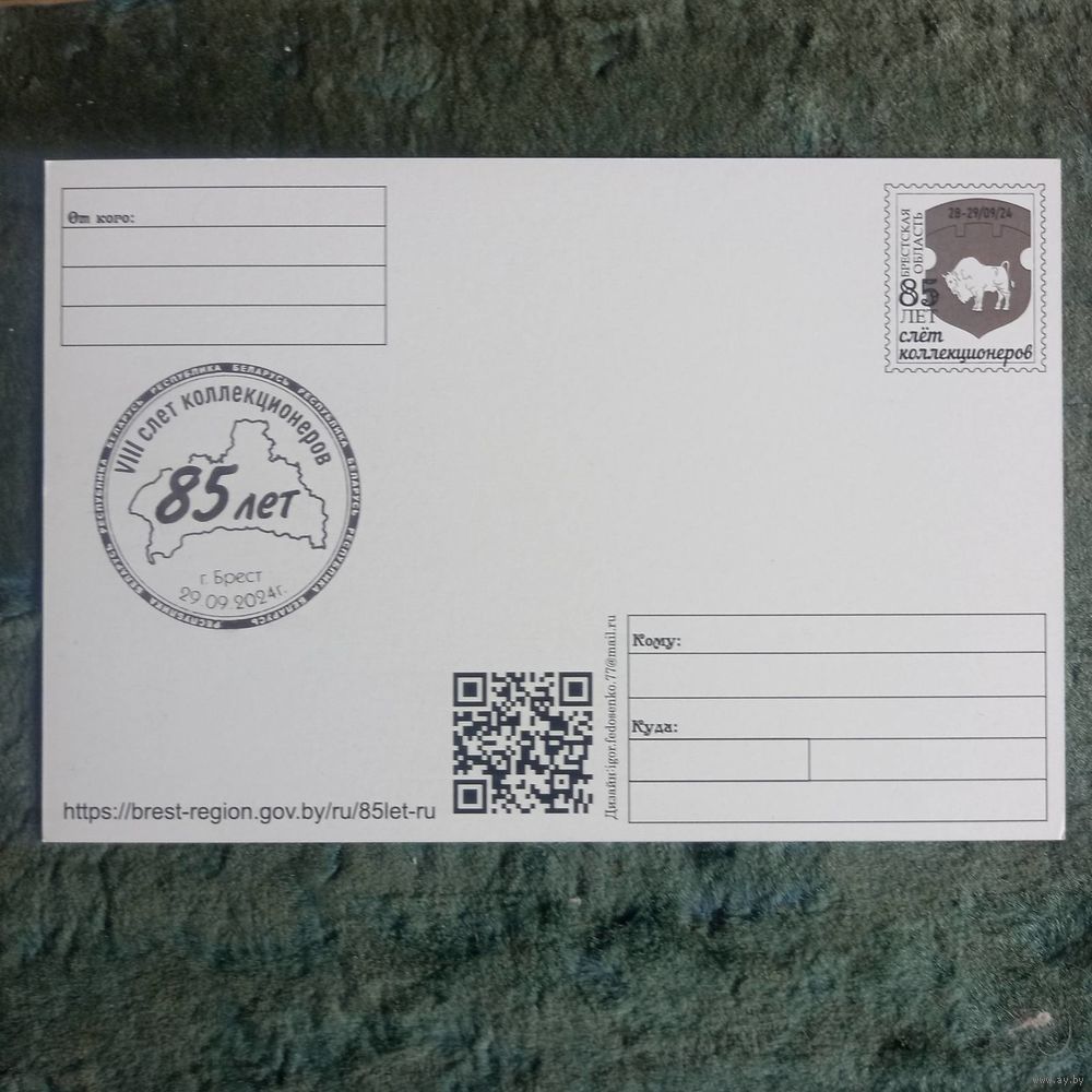 Открытка частного издания "85 лет Брестской области". +штамп 8й слет коллекционеров в Бресте 29,09,2024г.