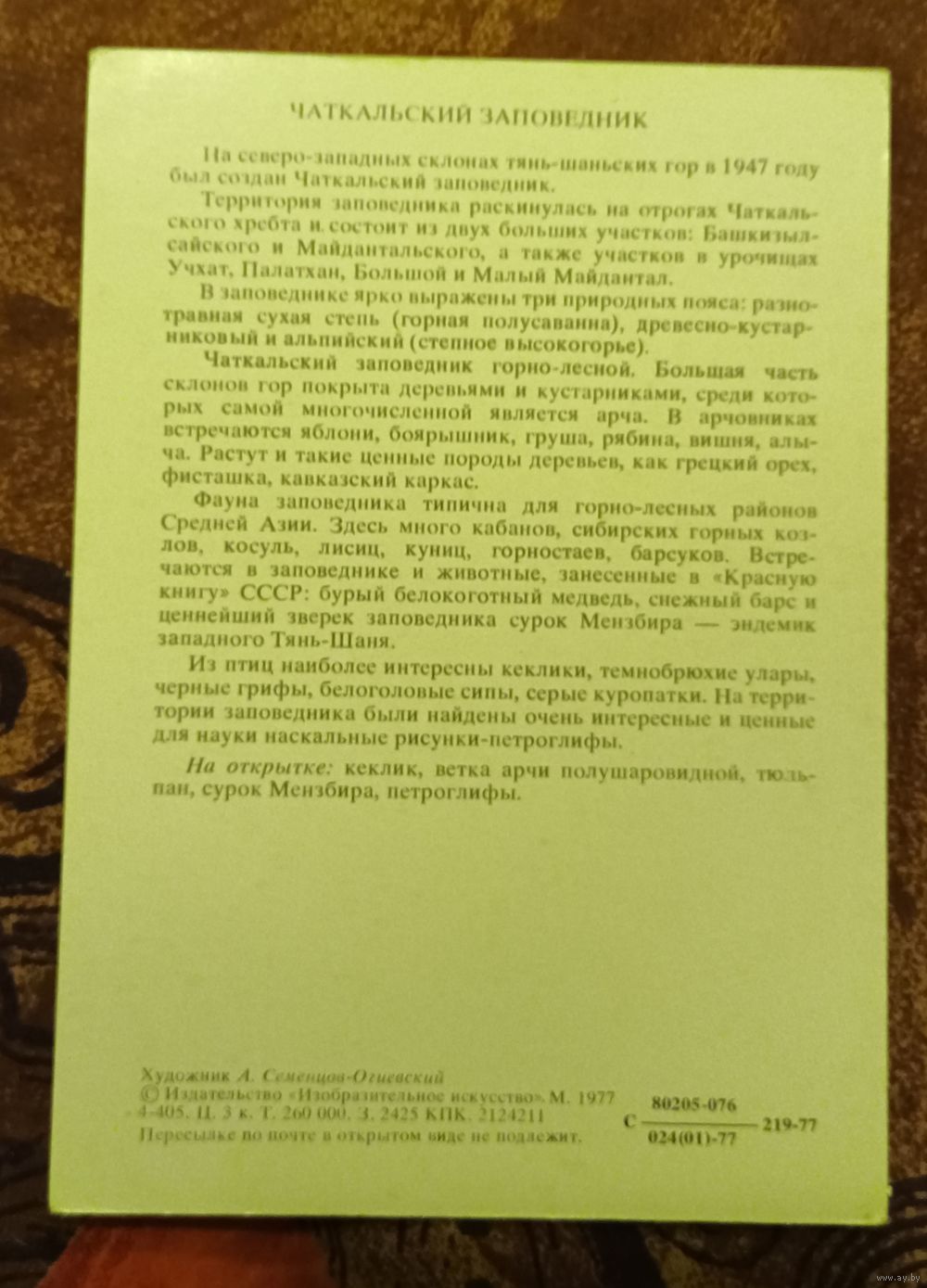 Открытка "Чаткальский заповедник"