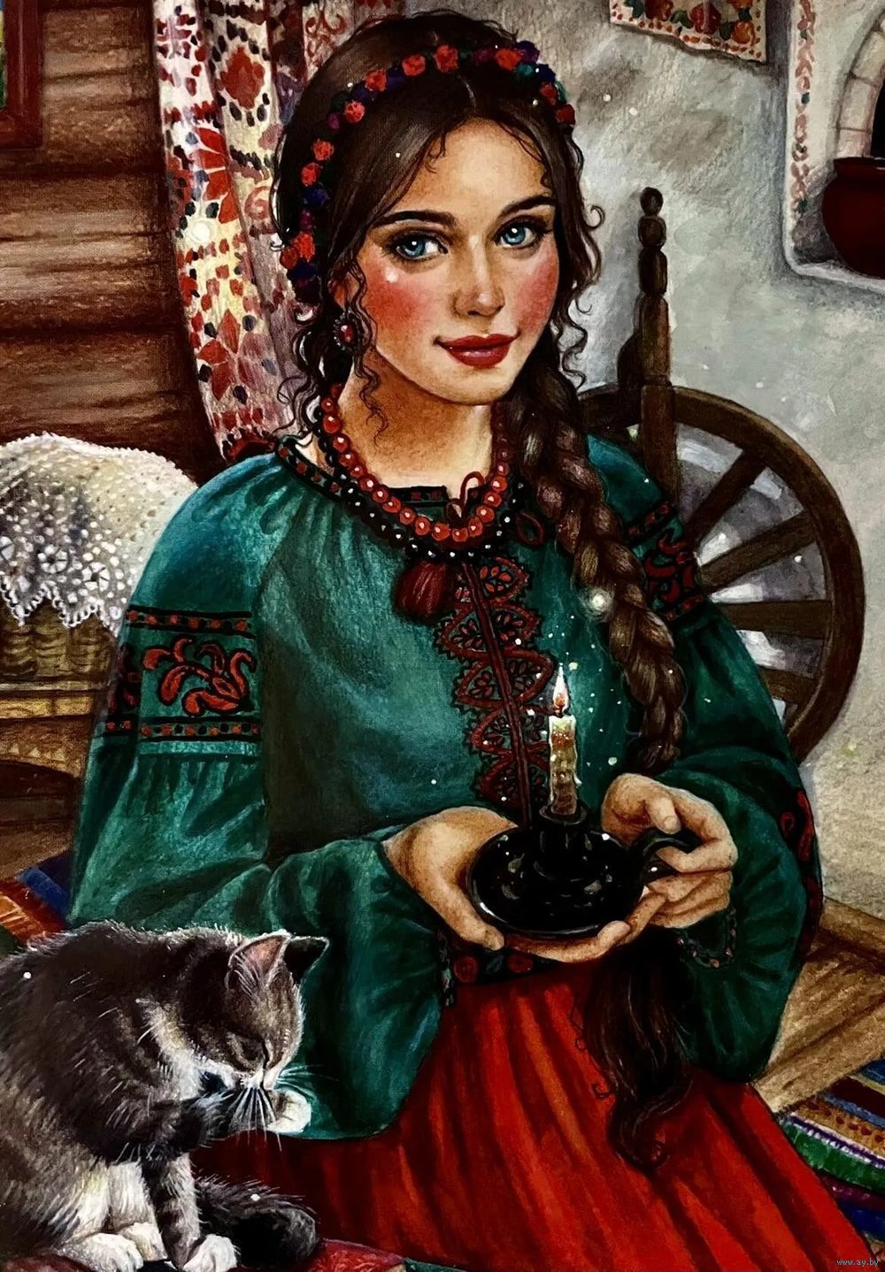 Открытка чистая 10х15 см. Художница Елена Буторина. Кошечка.