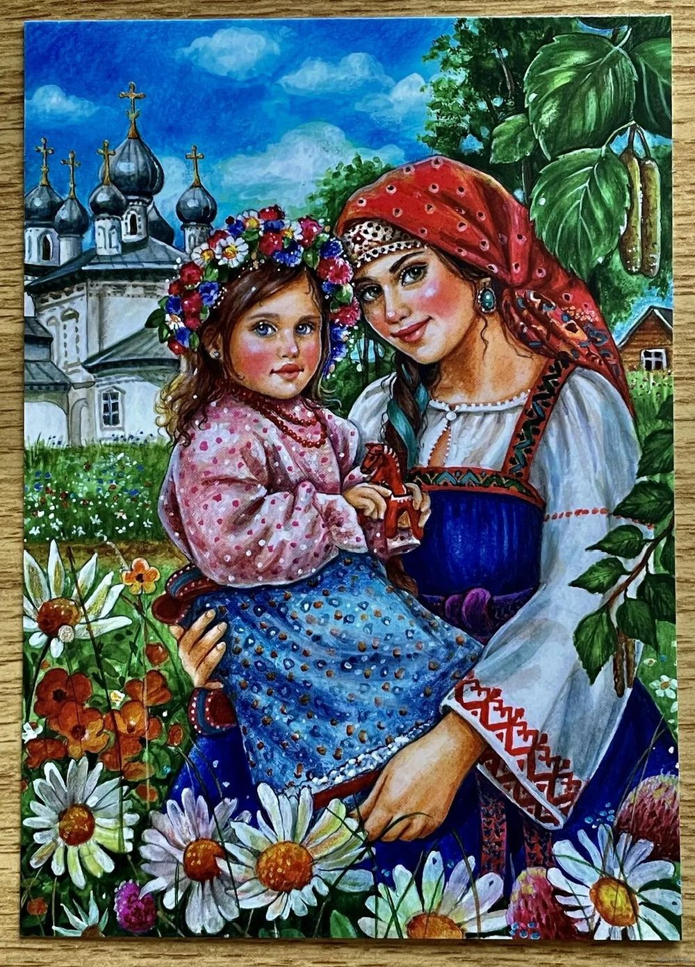 Открытка чистая 10х15 см. Художница Елена Буторина. Ромашки.