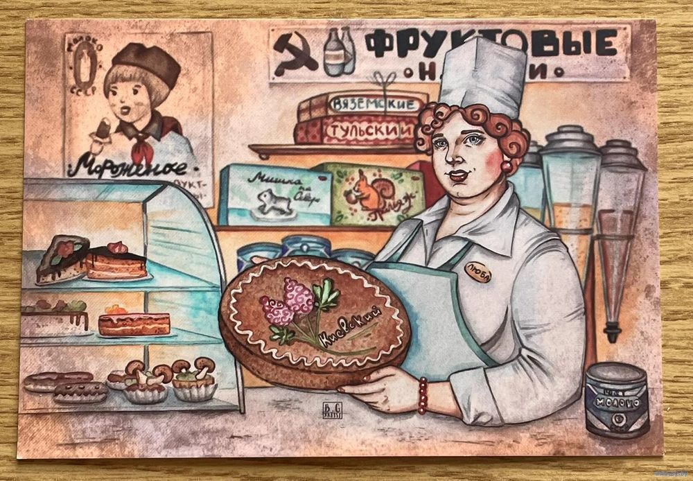Открытка чистая 10х15 см. Иллюстратор Бэлла Городецкая. Буфетчица.