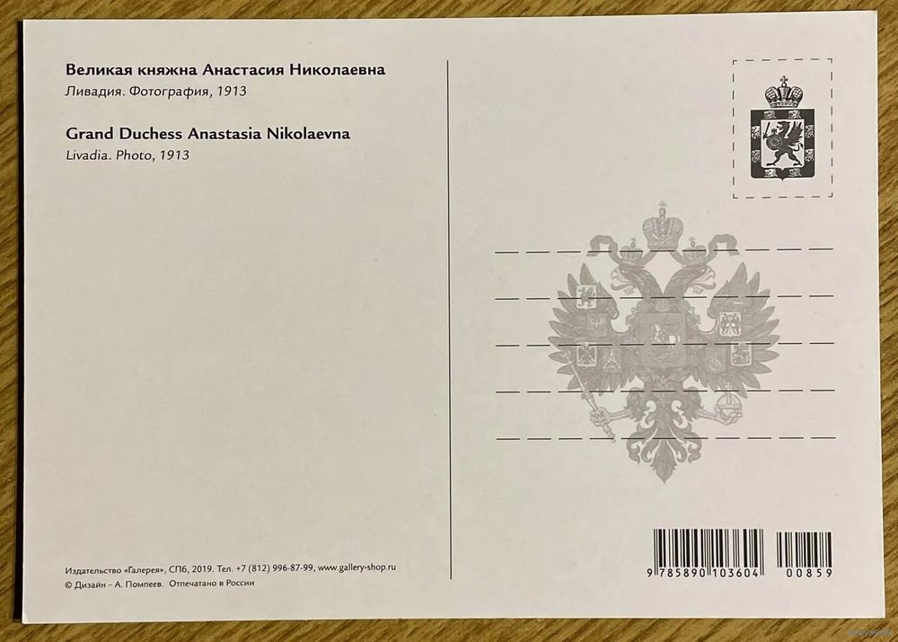 Открытка чистая 10х15 см. Великая княжна Анастасия Николаевна