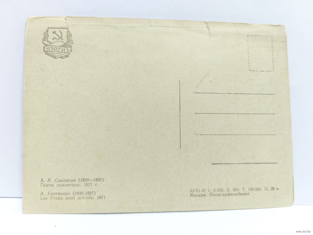 Открытка чистая, 1957г. Саврасов А.К. Грачи прилетели. 1871г. 14